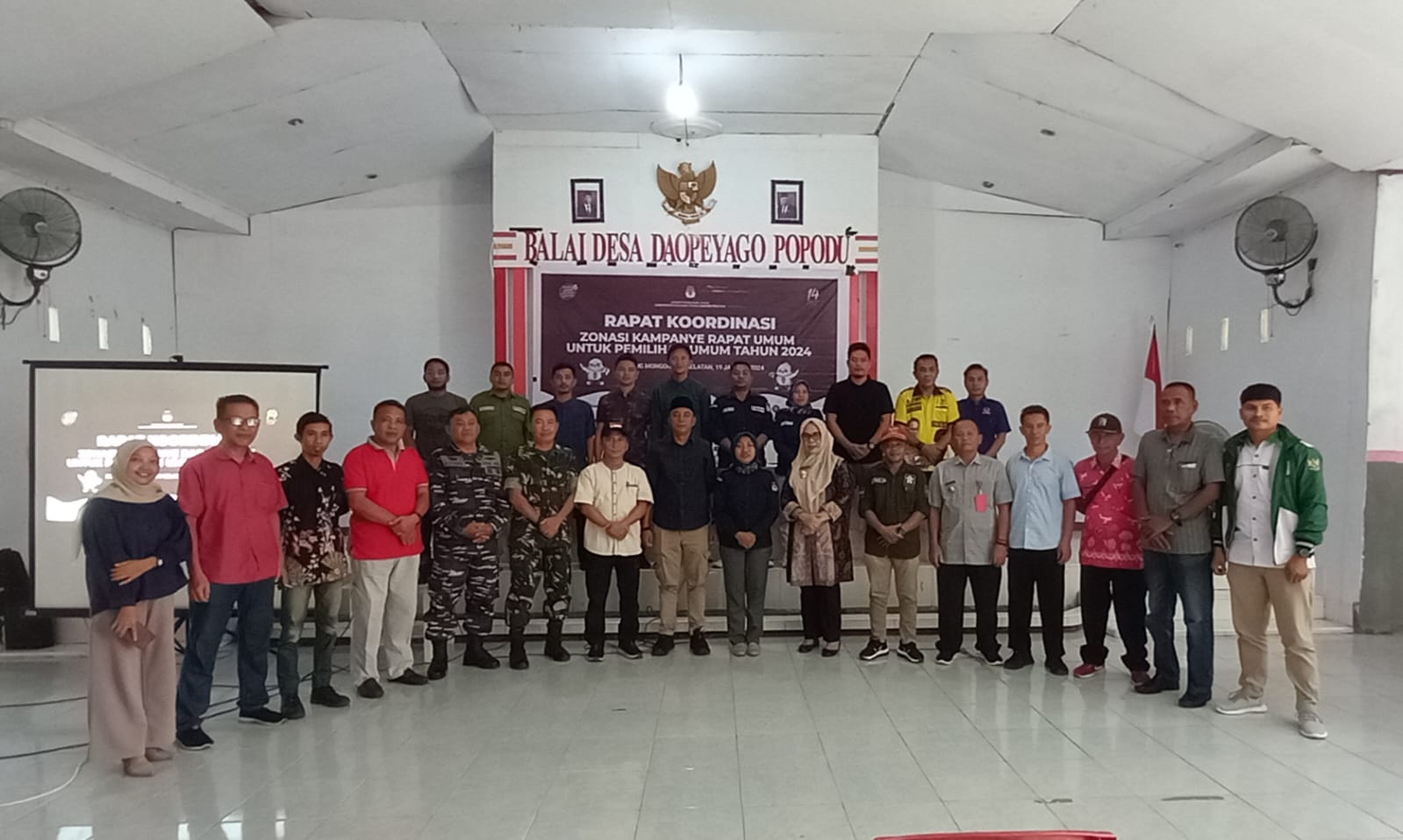 ERASTORI.COM – Bertempat di aula Kantor Desa Popodu, Kecamatan Bolaang Uki, Komisi Pemilihan Umum (KPU) Kabupaten Bolsel mengelar Rapat Koordinasi Zonasi Kampanye, Rapar Umum Pemilu 2024, Jumat, 19 Januari 2024.