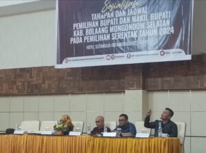 ERASTORI.COM – Dilaksanakan di Hotel Sutanraja Kotamobagu, mulai 2 hingga 3 Mei 2024, Komisi Pemilihan Umum (KPU) Bolaang Mongondow Selatan (Bolsel) menggelar sosialisasi: “Tahapan dan Jadwal Pemilihan Bupati dan Wakil Bupati Kabupaten Bolsel pada Pemilihan Serentak 2024”.