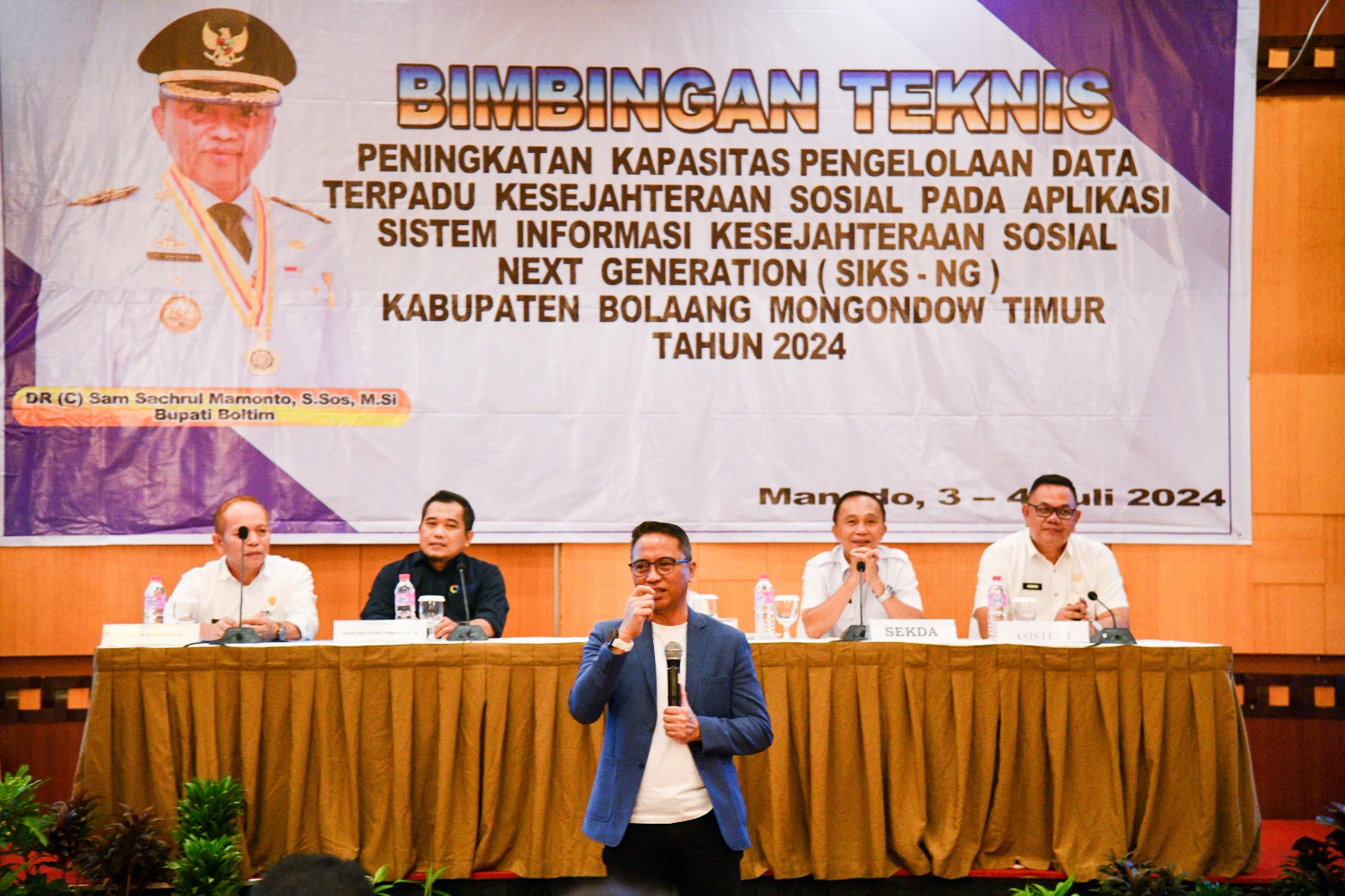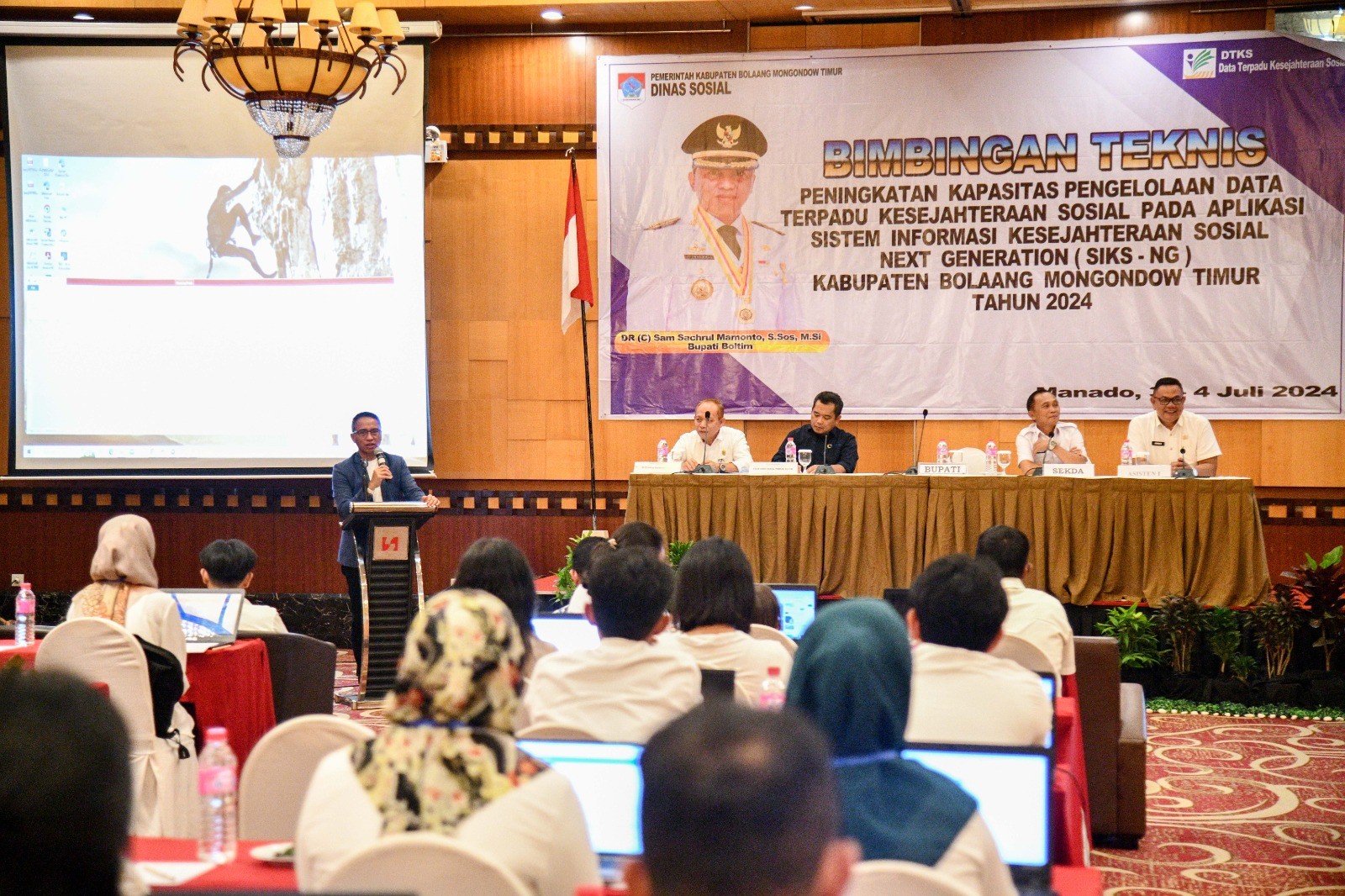 Erastori,Boltim– Bupati Bolaang Mongondow Timur (Boltim) Sam Sachrul Mamonto (SSM) resmi membuka kegiatan Bimbingan Teknis (Bimtek) peningkatan Kapasitas pengelolaan rata terpadu kesejahteraan sosial pada Aplikasi Sistem Informasi Kesejahteraan Sosial Next Generation (SIKS NG) pada Rabu, 3 Juli 2024 bertempat di Swiss Belhotel Maloesan Manado