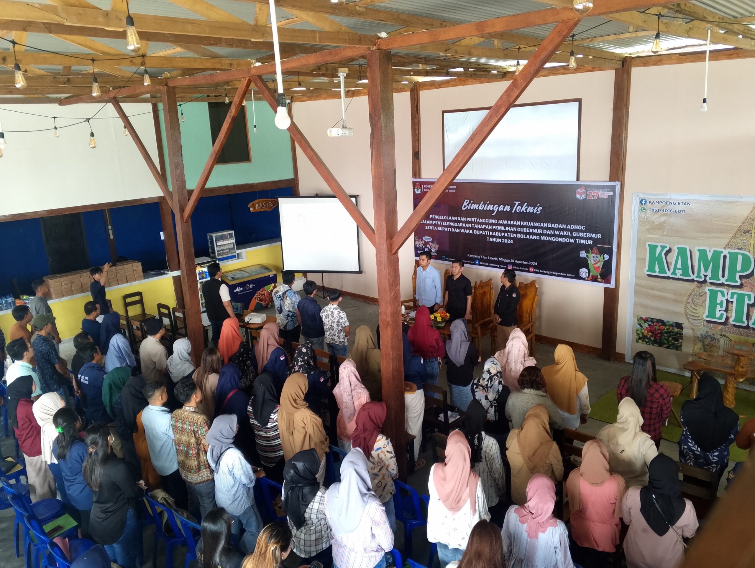 ERASTORI, BOLTIM– Komisi Pemilihan Umum (KPU) Kabupaten Bolaang Mongondow Timur (Boltim) menggelar Bimbingan Teknis (Bimtek) tentang pengelolaan dan pertanggungjawaban keuangan badan Adhock pada Minggu, 18 Agustus 2024 di Kampoeng Etan, Desa Liberi, Kecamatan Modayag.