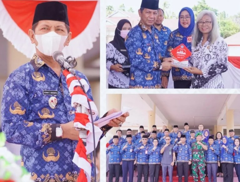 ERASTORI, BOLMONG– Pj Bolaang Mongondow, dr Jusnan C Mokoginta, memimpin Upacara Bendera dalam rangka memperingati Hari Ulang Tahun Korps Pegawai Republik Indonesia (KORPRI) ke-53.