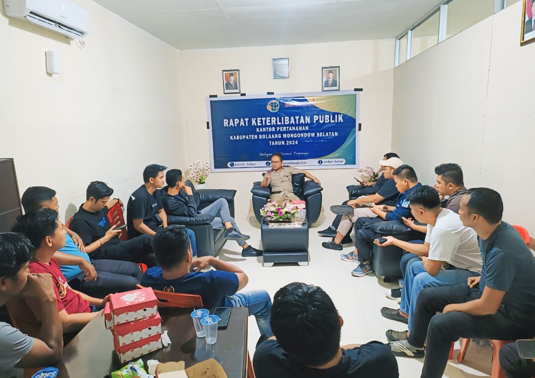 ERASTORI.COM – Badan Pertanahan Nasional (BPN) Kabupaten Bolaang Mongondow Selatan (Bolsel), menggelar rapat keterlibatan publik sebagai langkah transparansi serta evaluasi kemajuan sejumlah program pembangunan, dan sertifikasi tanah di wilayah tersebut.