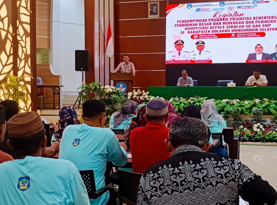 ERASTORI.COM – Pendampingan Program Prioritas Kementerian Pendidikan Dasar dan Menengah (Kemendikdasmen) Republik Indonesia (RI) dan Peningkatan Kompetensi Kepala Sekolah (Kepsek) Jenjang SD & SMP se-Bolsel resmi ditutup, pada hari Minggu, 29 Juni 2025.