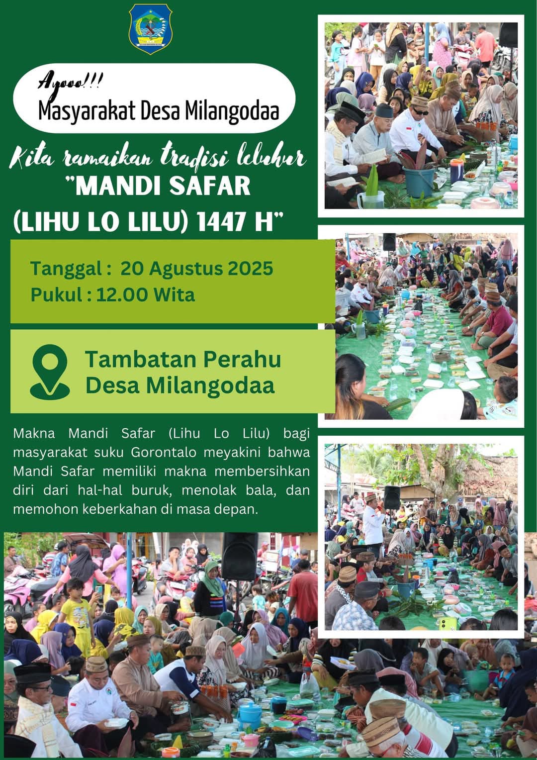 ERASTORI.COM, BOLSEL – Suasana haru penuh kekhidmatan bercampur kemeriahan rakyat menyelimuti Desa Botuliodu, Kecamatan Tomini, saat ribuan warga tumpah ruah mengikuti tradisi sakral “Lihu Lo Lilu” atau Mandi Safar 1447 H, Rabu, 20 Agustus 2025.