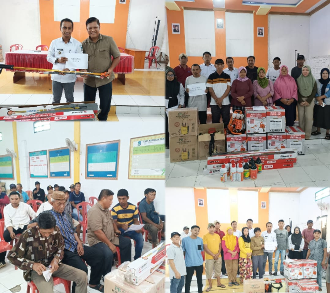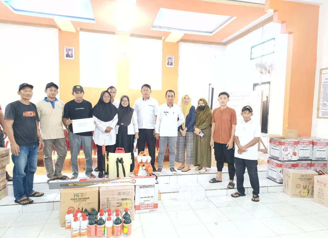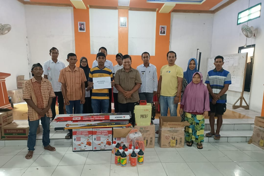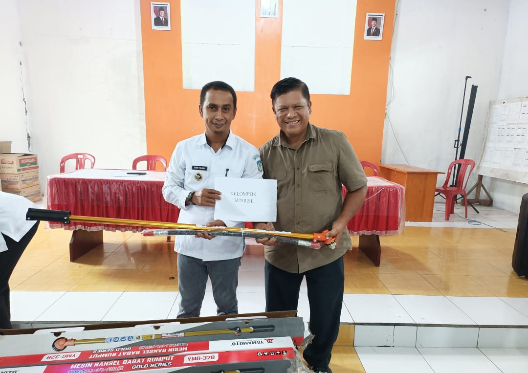 Hasil pantauan media, bantu yang diserahkan kepada masyarakat di aula kantor Desa Tolondadu II, Rabu, 6 Agustus 2025. Berupa mesin potong rumput, hand sprayer dan obat racun rumput (herbisida).